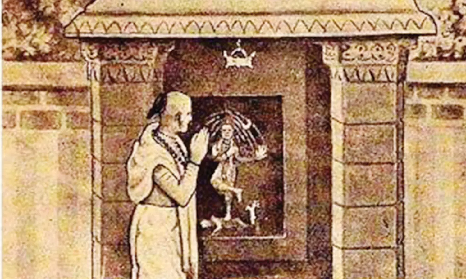 சவுக்குத் தோப்புக்கள் நிறைந்த கானகத்தில் ஒரு பாழும் மண்டபத்தில் வழிதெரியாமல் அழுது அழுது அவன் மயங்கிக் கிடக்கிறானே! அவன் எங்கே இருக்கிறான் என்று ஞானக் கண்ணால் கண்டு சொன்னார் சூர்தாஸ். அவனைக் கண்டுபிடிக்கச் செல்ல வேண்டிய திசை, அதற்கான வழி, மண்டபத்தின் அடையாளம் அனைத்தையும் விவரித்தார்.
