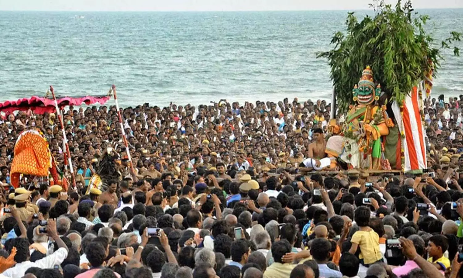 கடல், ஆகாயத்தின் செந்நிறமாக மாறும். கடற்கரையில் குண்டூசி விழுந்தால் கூட சத்தம் கேட்கும் அளவுக்கு அசாதாரண அமைதி நிலவும். லட்சக்கணக்கான மக்கள் சூரசம்ஹாரத்தை காண்பதற்கு கடலும் சற்று உள்வாங்கும் என்று சொல்வார்கள்.