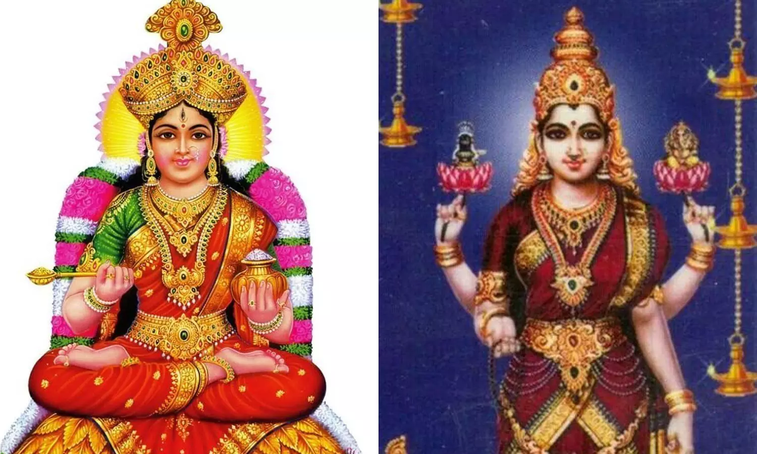 அம்பாளின் அருகே இரு புறமும் தங்கத்தினால் ஆன ஸ்ரீதேவியும் பூதேவியும் கொலுவிருந்து கையைத் தூக்கி ஆசீர்வதித்து அருள்கிறார்கள்.