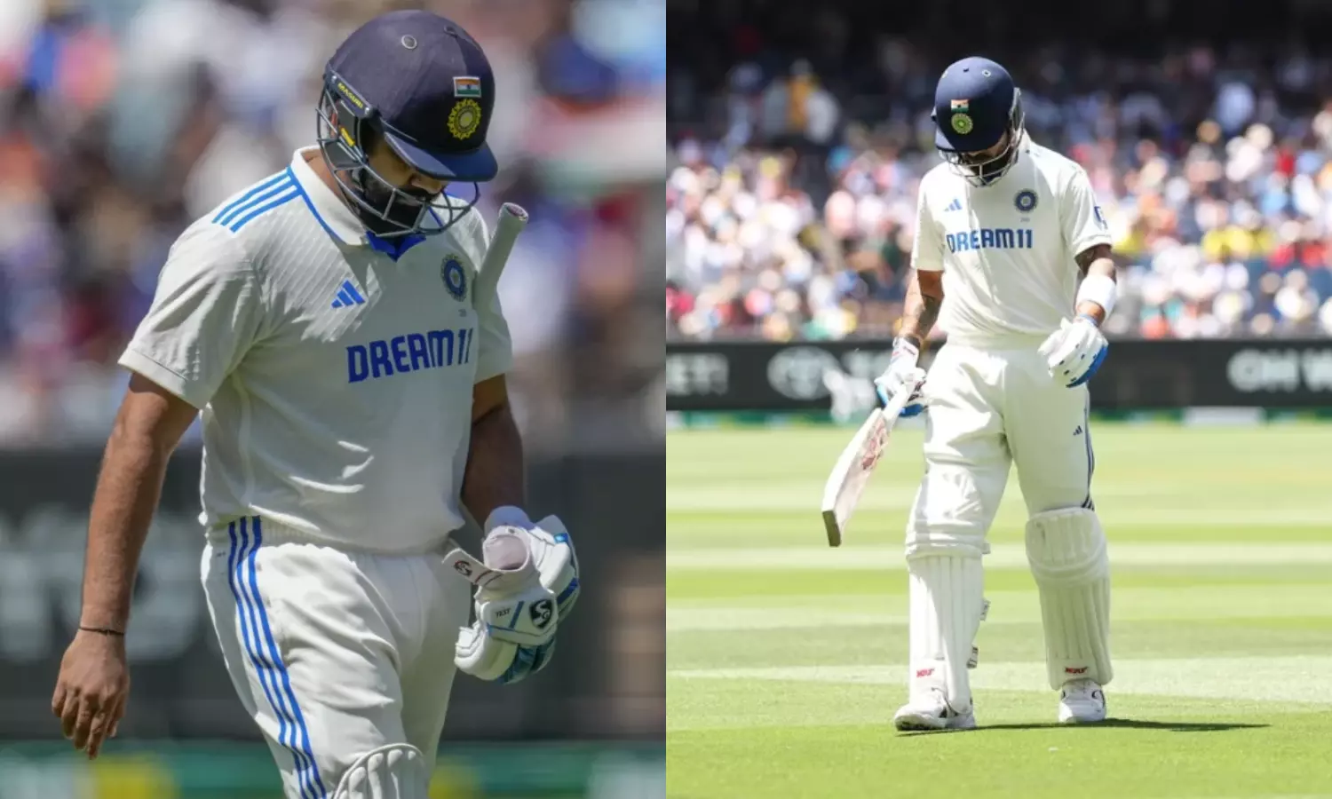 ரோகித் சர்மா 9 ரன்னிலும், கே.எல். ராகுல் ரன் எதுவும் எடுக்காமலும் கம்மின்ஸ் பந்திலும், விராட் கோலி 5 ரன்னில் ஸ்டார்க் பந்திலும் வெளியேறினார்கள். ரோகித் அவுட் ஆனது கூட பரவாயில்லை. விராட் கோலி அவுட் ஆனதுதான் ரசிகர்களிடையே கோபத்தை ஏற்படுத்தி உள்ளது. விராட் மீண்டும் அவுட் சைடு ஆப் பந்தை தொட்டு ஆட்டமிழந்தார். இந்த தொடரில் அவர் அவுட் ஆனது எல்லாமே அவுட் சைடு ஆப் ஸ்டெம்ப். இதனால் அவரையும் ரோகித் சர்மாவையும் ஓய்வு பெறுமாறு ரசிகர்கள் கருத்து தெரிவித்து வருகின்றனர்.