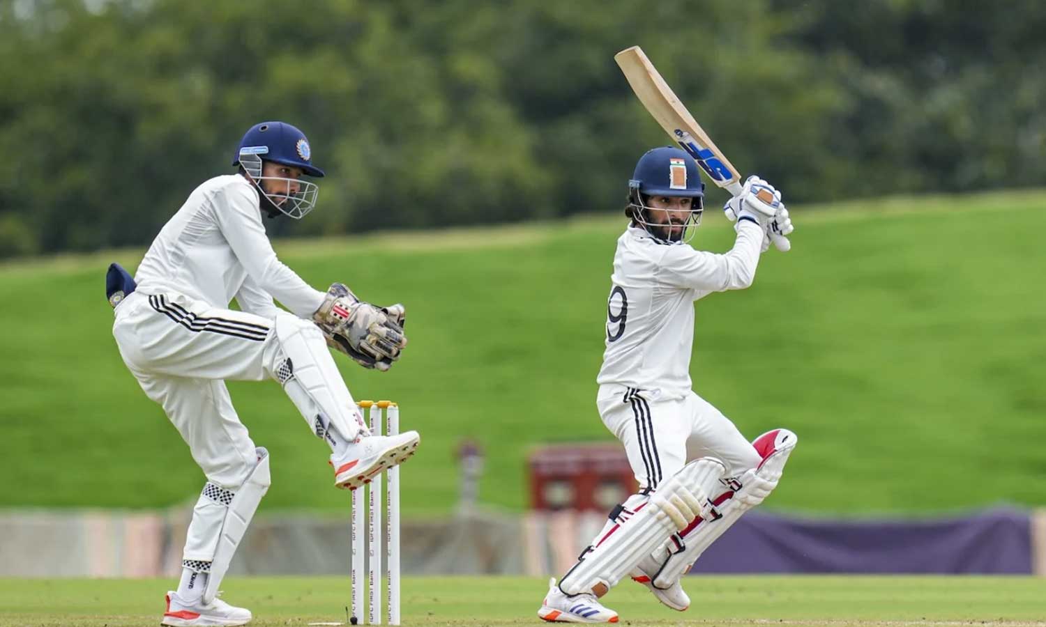 அடுத்து வந்த கேப்டன் ரஜத் படிதார் அபாரமான ஆட்டத்தை வெளிப்படுத்தினார். அவர் 115 பந்தில் 101 ரன்கள் எடுத்து ஆட்டமிழந்தார். அவரது ஸ்கோரில் 12 பவுண்டரி, 2 சிக்சர்கள் அடங்கும். யாஷ் ரதோட் 76 ரன்கள் எடுத்து விளையாடி வருகிறார்.