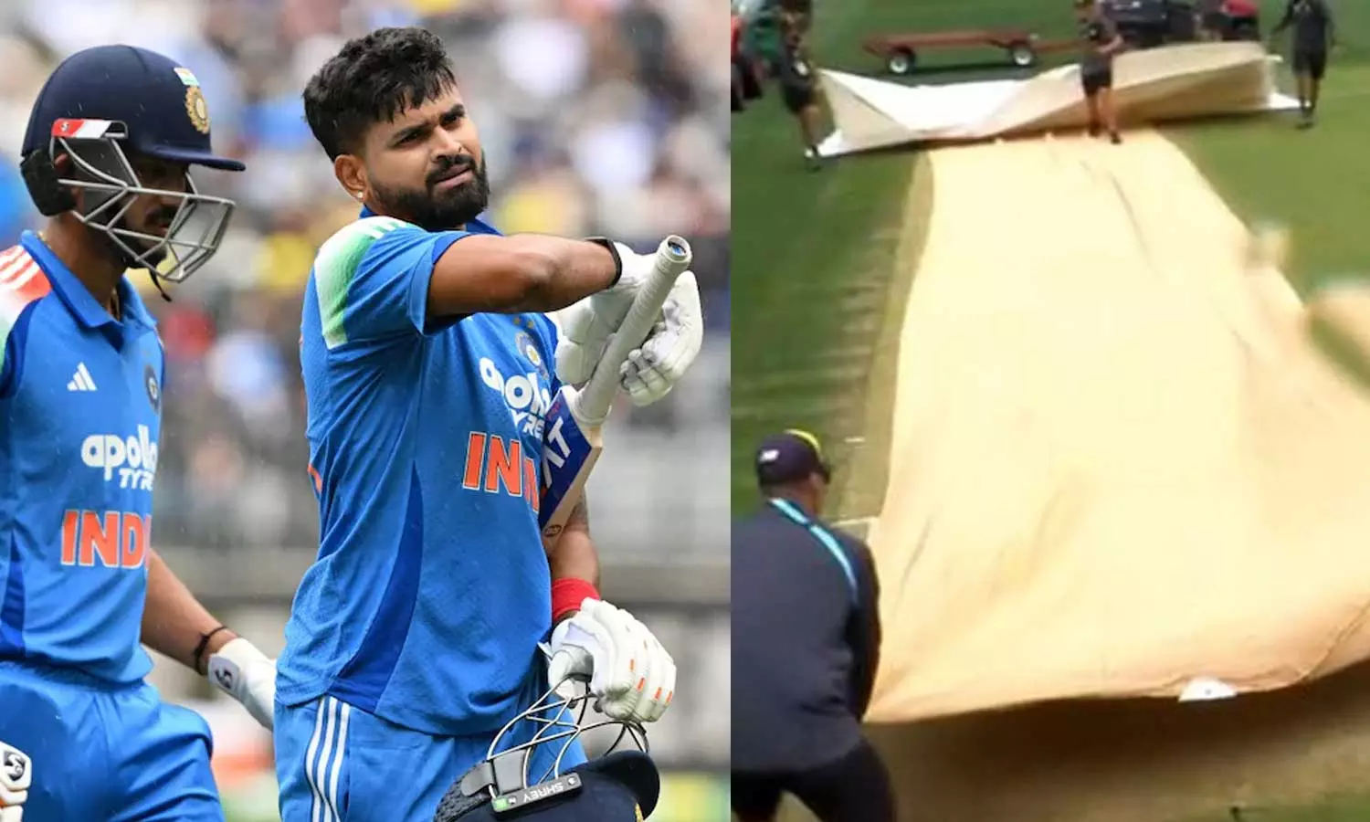 4-வது விக்கெட்டுக்கு ஸ்ரேயாஸ் அய்யருடன் அக்ஷர் படேல் ஜோடி சேர்ந்தார். இந்திய அணி 8.5 ஓவரில் 3 விக்கெட்டுக்கு 25 ரன் எடுத்து இருந்த போது மழையால் ஆட்டம் சிறிது பாதிக்கப்பட்டது. இதனால் ஆட்டம் 49 ஓவர்களாக குறைக்கப் பட்டது. அதாவது ஒரு ஓவர் குறைக்கப்பட்டது.