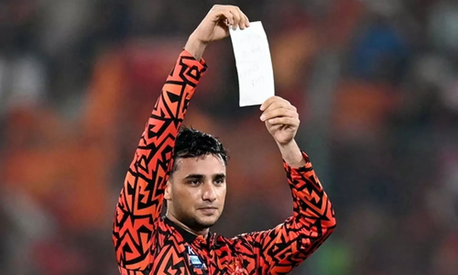 அபிஷேக் சர்மா தனது பாக்கெட்டில் இருந்து காண்பித்த ஒரு துண்டுச்சீட்டில், 'This one is for Orange Army' (ஆரஞ்சு ஆர்மி ரசிகர்களே, இது உங்களுக்காகத்தான்) என எழுதப்பட்டிருந்தது.