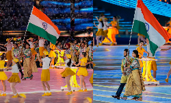 ஆசிய விளையாட்டு போட்டிகளில் பங்கேற்கும் நாடுகளை சேர்ந்த வீரர்கள், வீராங்கனைகள் தங்கள் நாட்டை அறிமுகப்படுத்தி வருகின்றனர். அந்த வகையில் இந்தியாவை அறிமுகப்படுத்தும் வகையில், இந்திய தேசியக்கொடியுடன் லோவ்லினா மற்றும் ஹர்மன்பிரீத் சிங் அணிவகுப்பு நடத்தினர்.
