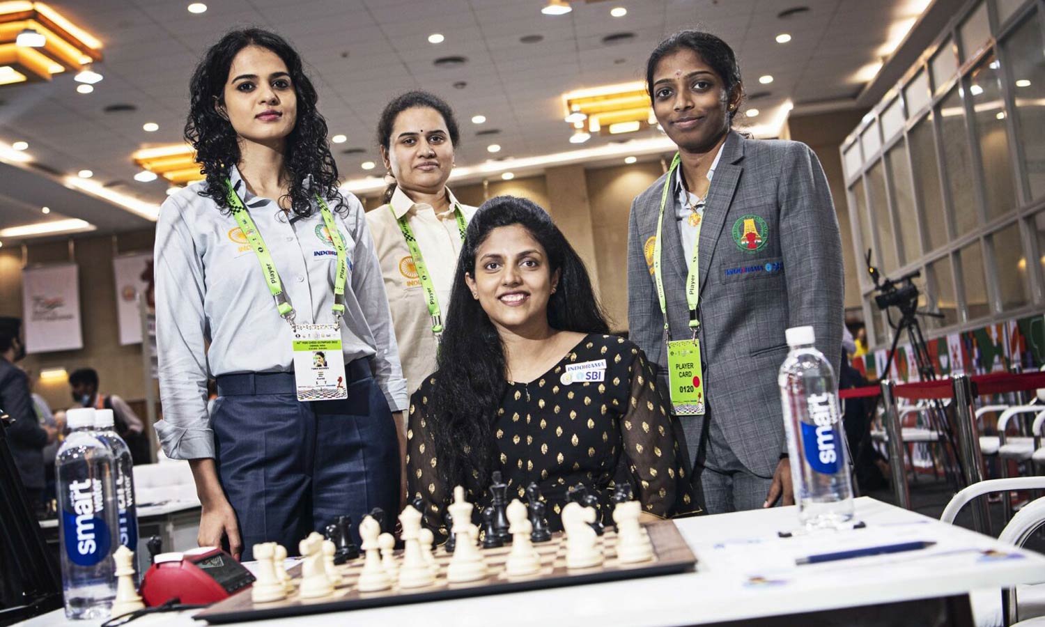 இந்திய பெண்கள் ‘ஏ’ அணியில் இடம் பெற்ற ஹரிகா, தானியா, ஹம்பி, வைஷாலி ஆகியோரை படத்தில் காணலாம்