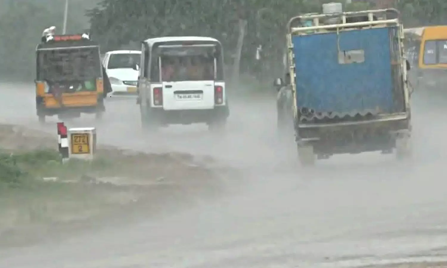 ராமநாதபுரம் புதிய பஸ் நிலையம் பகுதியில் பெய்த மழைக்கு இடையே வாகனங்கள் சீறிப்பாய்ந்து சென்ற காட்சி.