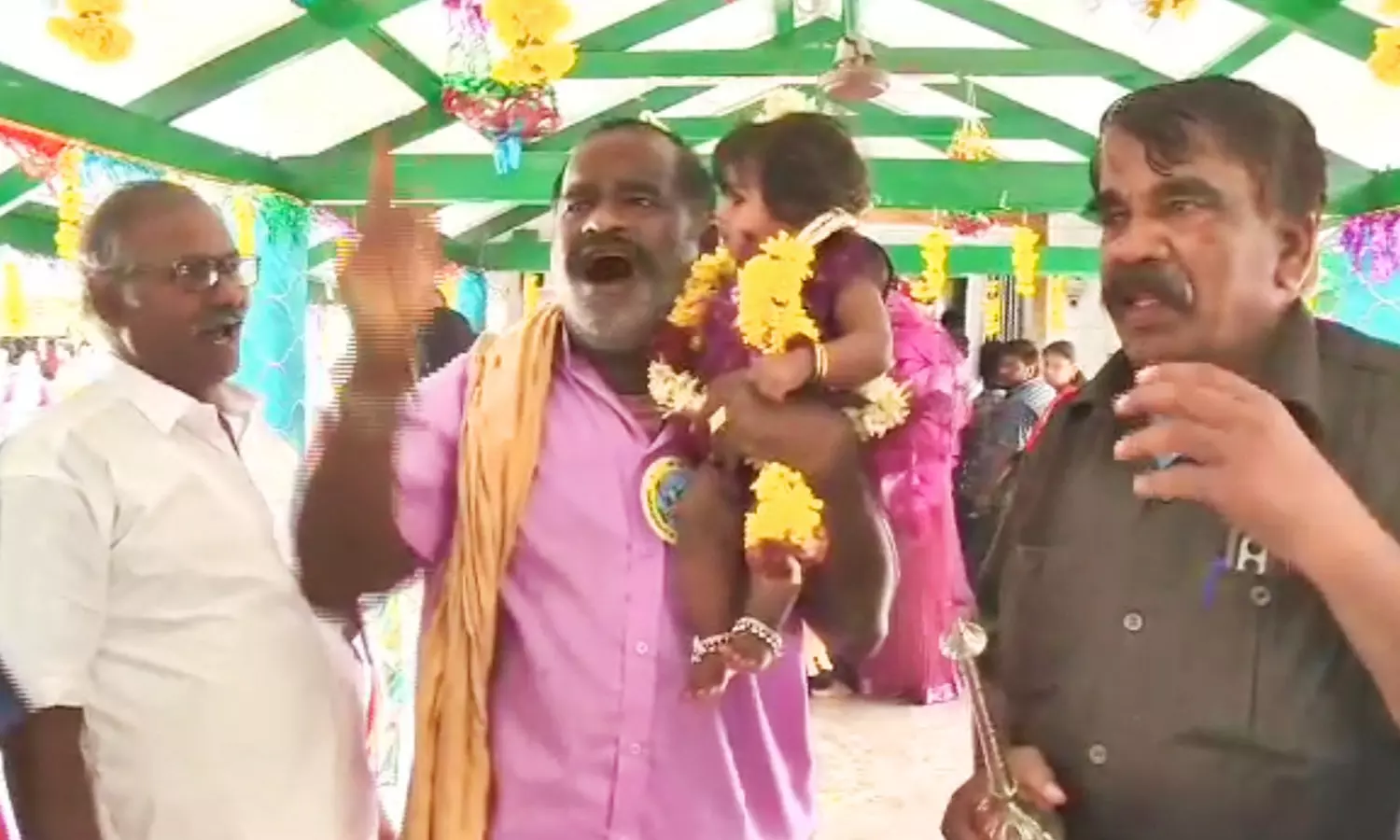 கோவில் திருவிழாவில் குழந்தை ஏலம் விடப்பட்ட காட்சி.
