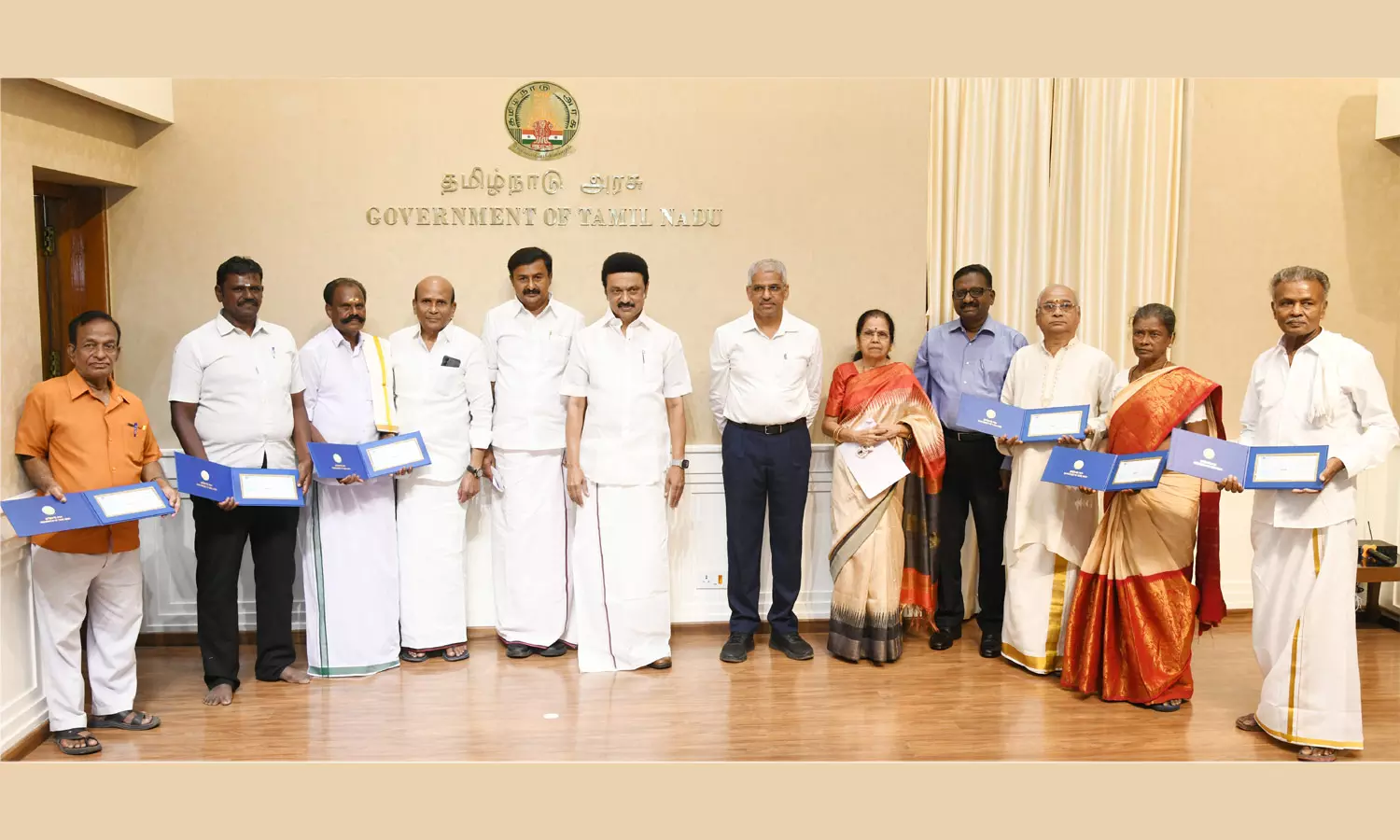 அதன் அடிப்படையில், கலைமாமணி விருது பெற்ற 10 பேர்களுக்கு தலைமைச் செயலகத்தில் இன்று முதலமைச்சர் மு.க. ஸ்டாலின் தலா ரூ.1 லட்சம் வீதம் பொற்கிழி வழங்கினார். மேலும் 500 கிராமியக் கலைஞர்களுக்கு இசைக்கருவிகள் மற்றும் ஆடை அணிகலன்கள் வாங்கிட தலா 10 ஆயிரம் ரூபாய் நிதி உதவி வழங்கினார்.