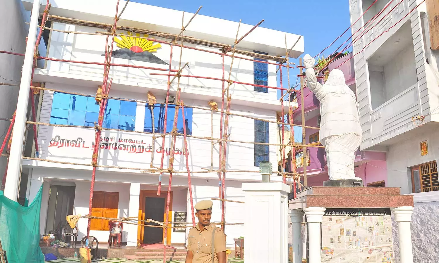 - மாநகராட்சி அலுவலகம் திறப்பு விழா நாளை நடைபெறுவதையடுத்து அங்கு பலத்த போலீஸ் பாதுகாப்பு போடப்பட்டுள்ளது.