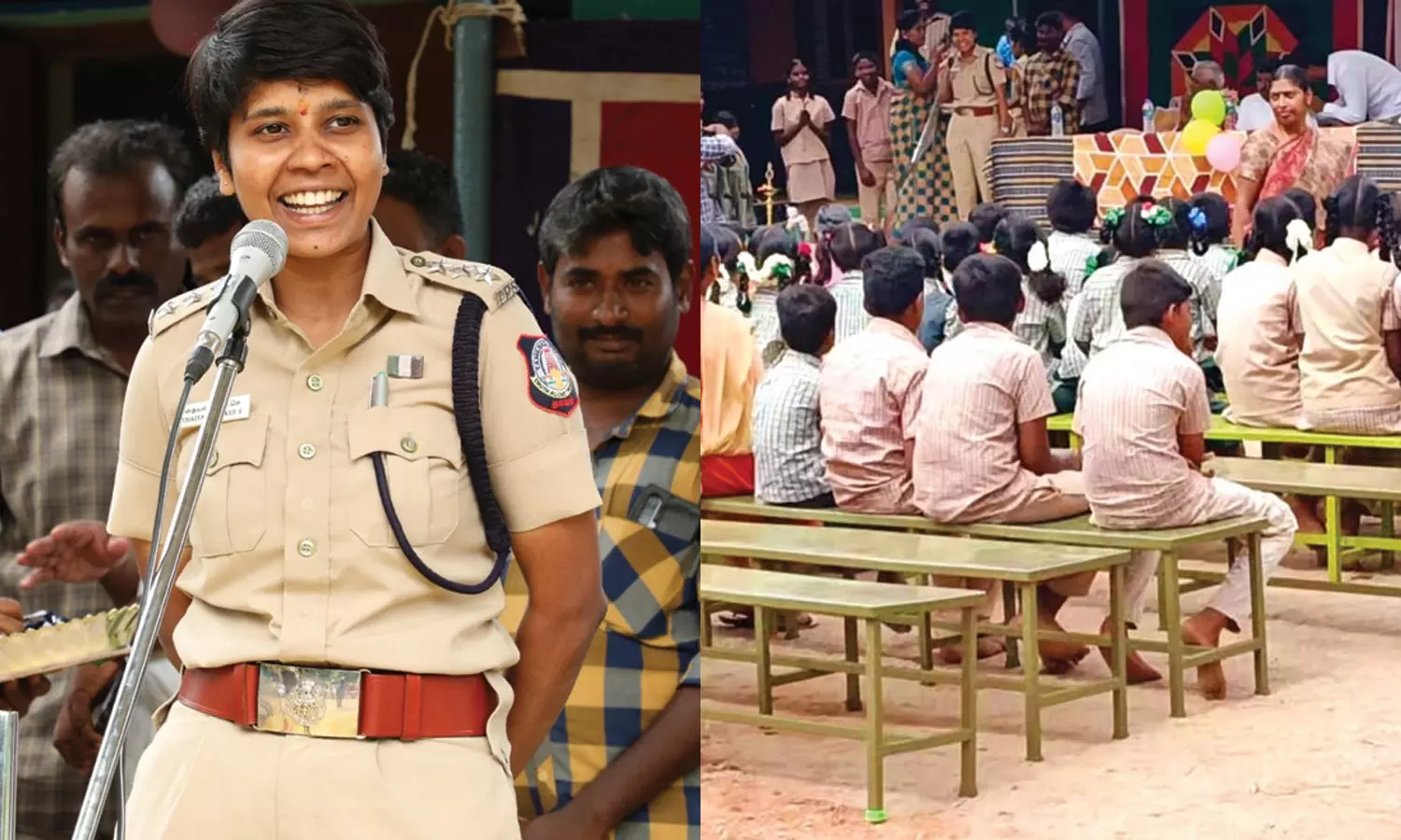 - பள்ளி குழந்தைகள் மத்தியில் பேசிய தையல் நாயகி, உங்களில் யார் எல்லாம் எதிர்காலத்தில் போலீஸ் ஆக விரும்புகிறீர்கள் என்று கேட்டார்.