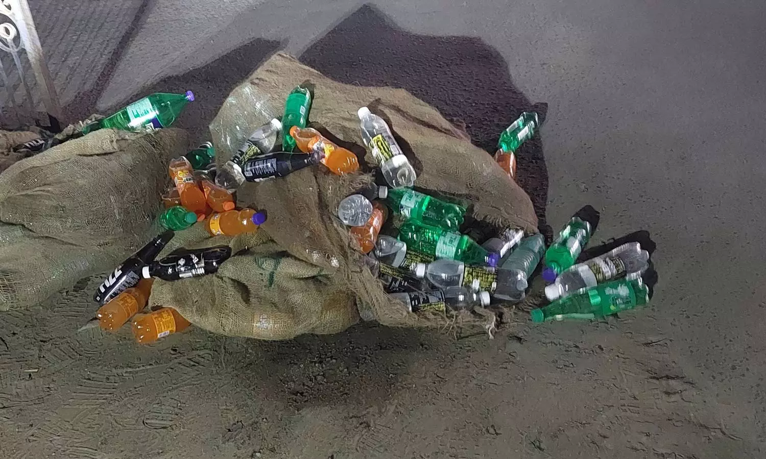 திருவள்ளூரில் சாலையோரம் மூட்டை மூட்டையாக கட்டி வீசப்பட்ட குளிர்பான பாட்டில்கள்