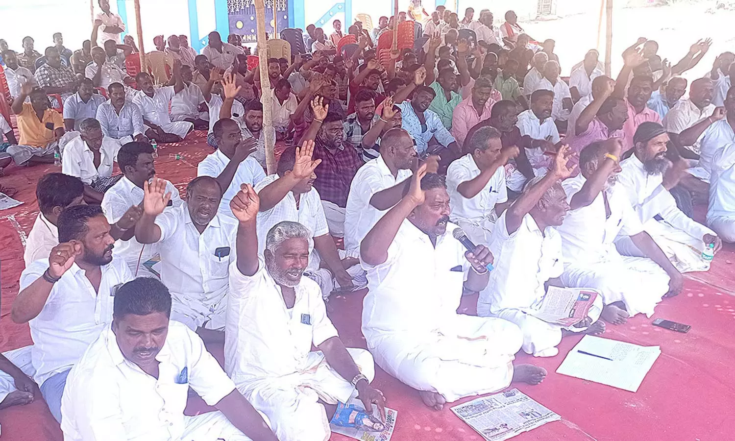 ராமநாதபுரம் மாவட்ட மீனவர் சங்க செயலாளர் ஜேசு ராஜா, மீனவர் சங்கத் தலைவர்கள் தேவதாஸ், எமரிட், சகாயராஜ் ஆகியோர் தலைமையில் 500-க்கும் மேற்பட்ட மீனவர்கள் கலந்து கொண்டனர்.