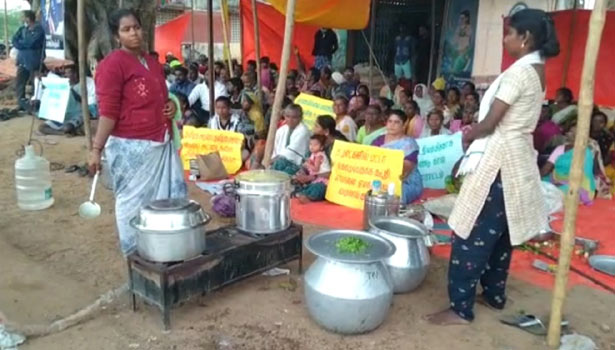 2-வது நாளாக போராட்டத்தில் ஈடுபட்ட கிராம மக்களை படத்தில் காணலாம்.