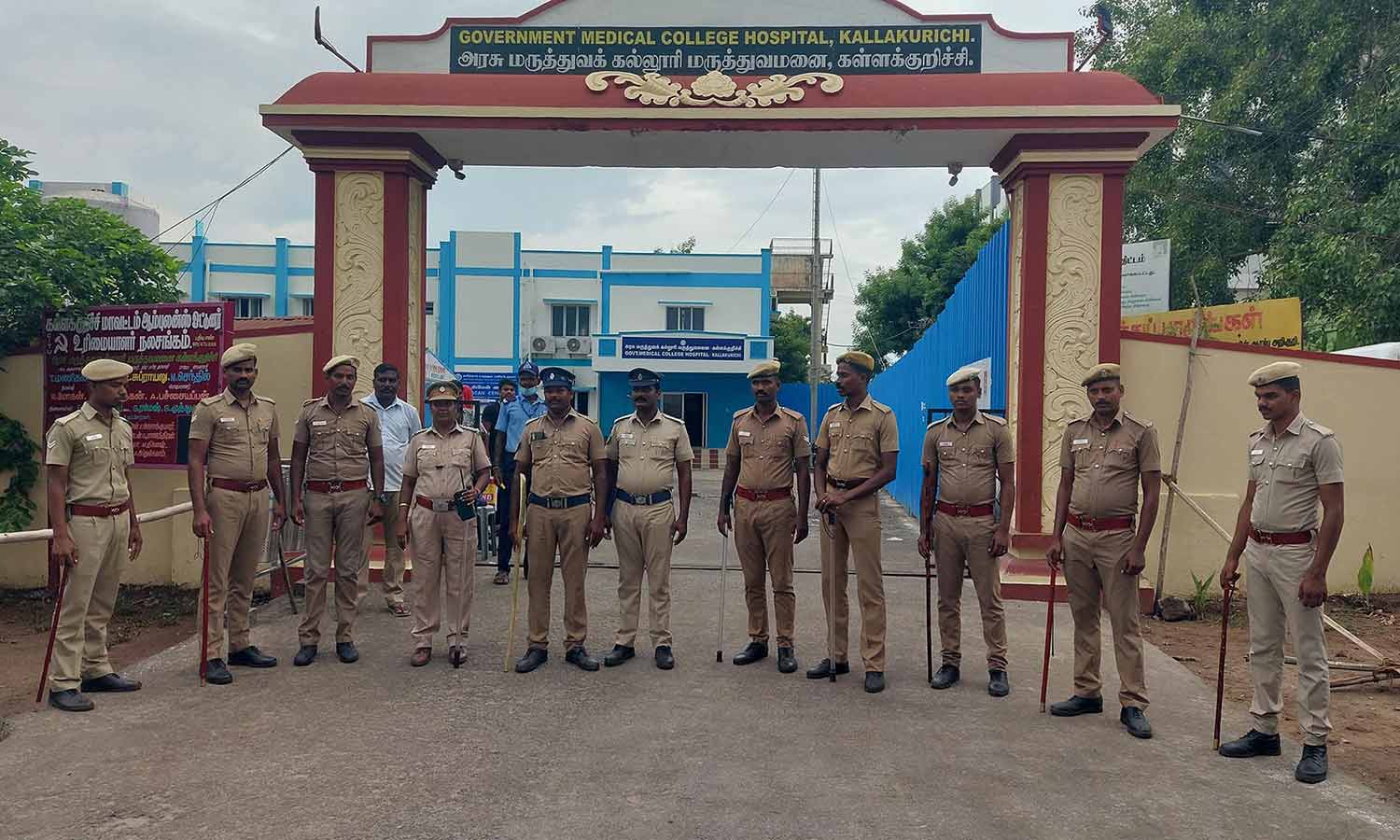- கள்ளக்குறிச்சி அரசு ஆஸ்பத்திரி முன்பு போலீஸ் பாதுகாப்பு பலப்படுத்தப்பட்டுள்ளது.