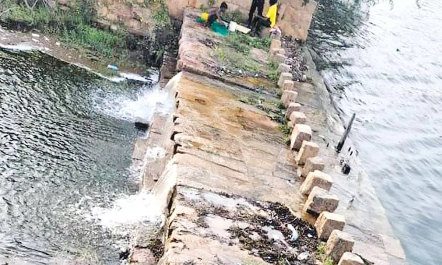 நிரம்பி மறுகால் பாயும் நிலையூர் கண்மாய்