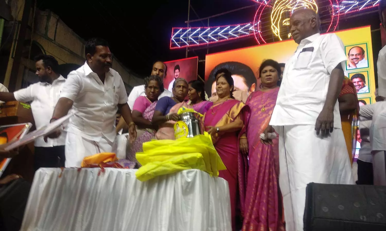 - 500-பேருக்கு சில்வர் குடம் மற்றும் பெண்களுக்கு சேலைகள் வழங்கப்பட்டது.