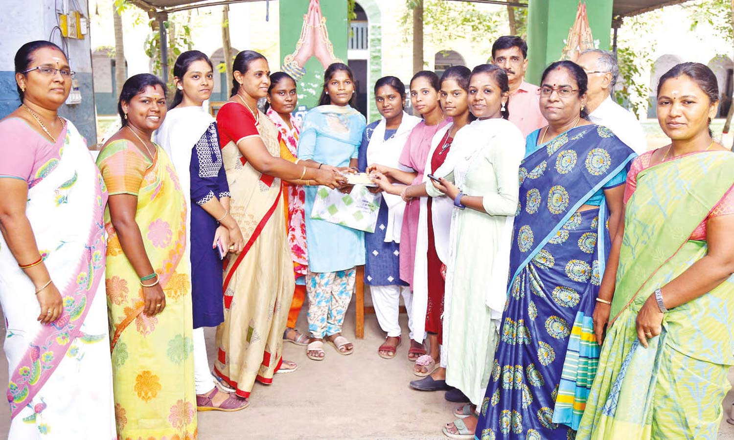 இனிப்புகள் பரிமாறி மகிழ்ச்சியை வெளிப்படுத்திய ஆசிரியைகள்-மாணவிகள்.