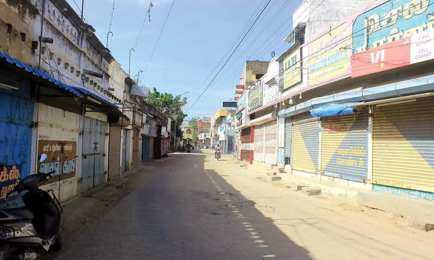 மேலப்பாளையம் ஆசாத் ரோட்டில் கடைகள் அடைக்கப்பட்டு இருக்கும் காட்சி.