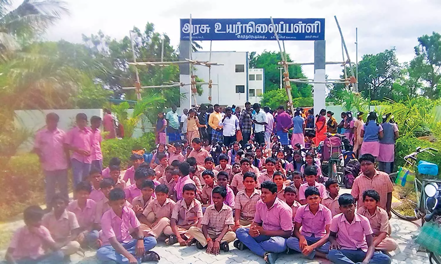 பெற்றோர்-ஆசிரியர் கழக தலைவரை மாற்றக் கோரி மாணவர்கள், பெற்றோர்கள் பள்ளியை முற்றுகையிட்டு போராட்டம்