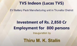 2850 கோடி ரூபாய் முதலீட்டில் 800 பேருக்கு வேலை அளிக்கும் வகையில் மின்சார பேட்டரி பேக் தயாரிப்பு யுனிட் திருவள்ளூர் மாவட்டத்தில் தொடங்கி வைக்கப்பட்டது.