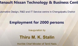 செங்கல்பட்டு மாவட்டத்தில் அமைந்துள்ள ரெனால்டு நிஷான் டெக்னாலாஜி அண்டு பிசினஸ் சென்டரை தொடங்கி வைத்தார்.