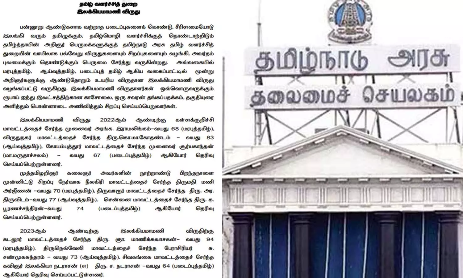 2023ம் ஆண்டிற்கான இலக்கியமாமணி விருது அறிவிப்பு