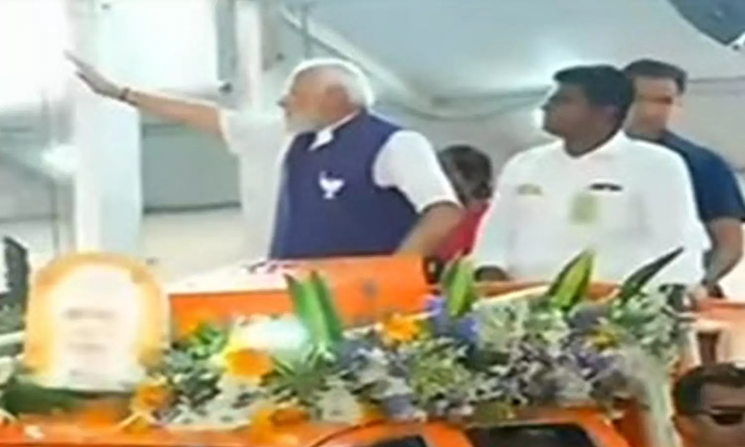 கேரள மாநிலம் பத்தினம் திட்டாவில் கடந்த 15-ந்தேதி பிரசாரம் மேற்கொண்ட மோடி, இன்று மீண்டும் பிரசாரத்தில் ஈடுபட்டார். அவர் அஞ்சு விளக்கு பகுதியில் இருந்து சுல்தான்பேட்டை வழியாக பாலக்காடு தலைமை தபால் நிலையம் வரையிலான ஒன்றரை கிலோமீட்டர் தூரம் திறந்த வாகனத்தில் நின்றபடி வாகன பேரணி சென்றார்.