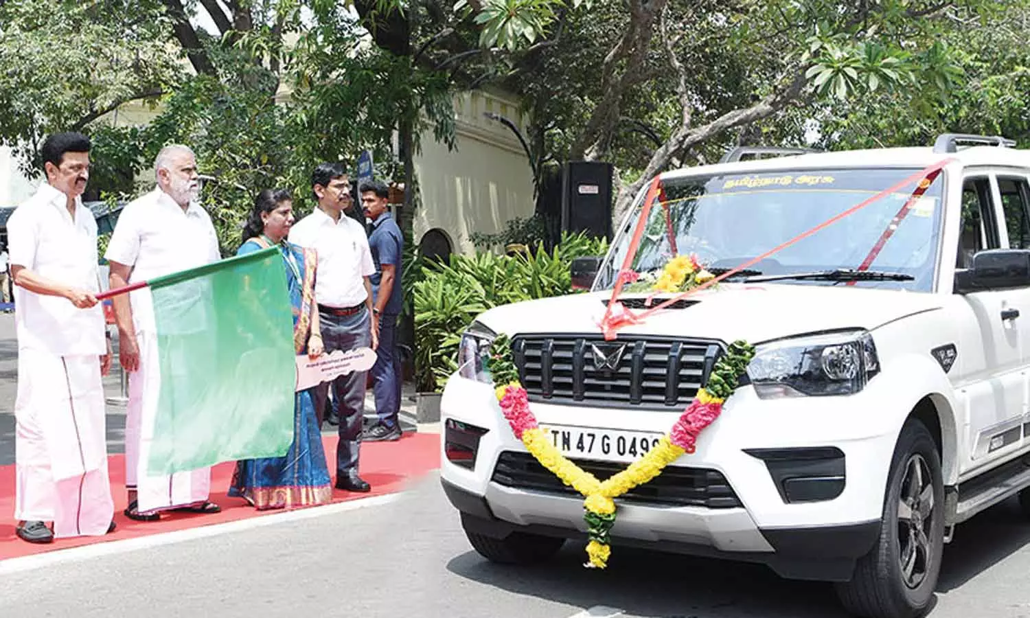 ஊராட்சி ஒன்றியக் குழுத் தலைவர்கள், தங்களது பகுதிகளில் மேற்கொள்ளப்படும் பணிகளைக் கண்காணிக்கும் பொருட்டு முதல்கட்டமாக 25 கோடியே 40 லட்சம் ரூபாய் மதிப்பிலான 200 புதிய ஸ்கார்பியோ வாகனங்களை ஊராட்சி ஒன்றிய குழுத் தலைவர்களின் பயன்பாட்டிற்காக வழங்கிடும் அடையாளமாக 12 வாகனங்களை முதலமைச்சர் மு.க.ஸ்டாலின் கொடியசைத்து தொடங்கி வைத்தார்.