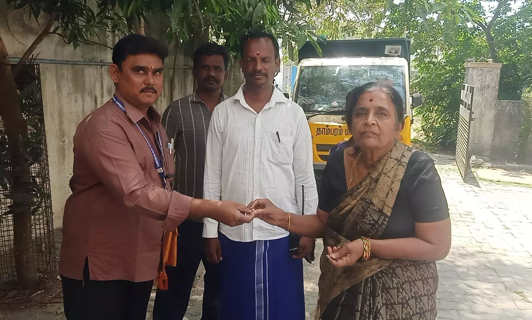 பின்னர் காலையில் தாம்பரம் மாநகராட்சி குப்பைகளை அள்ளும் வாகனம் தனது வீட்டின் அருகே வந்தவுடன் குப்பைகளை அள்ளி குப்பை வண்டியில் போட்டுள்ளார்.