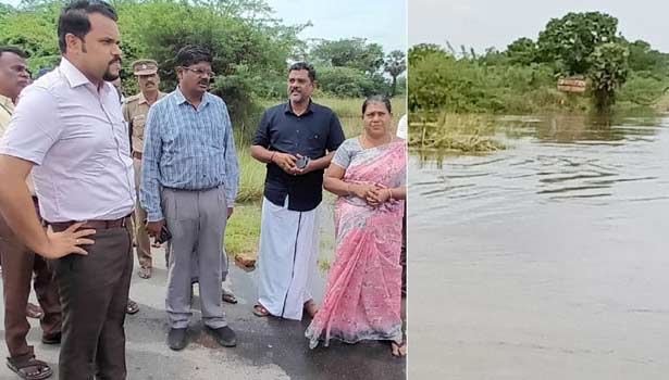 - குருவன்மேடு ஊராட்சி சாலையில் உள்ள தரைப்பாலத்தில் மழை வெள்ள நீர் அதிக அளவு வெளியேறுவதை கலெக்டர் ராகுல்நாத் நேரில் பார்வையிட்டு ஆய்வு செய்தார்.