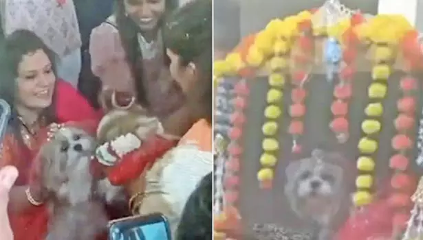 பொம்மை காரில் அழைத்து வந்து தடபுடல் விருந்துடன் செல்ல நாய்களுக்கு திருமணம் செய்து வைத்த தம்பதிகள்