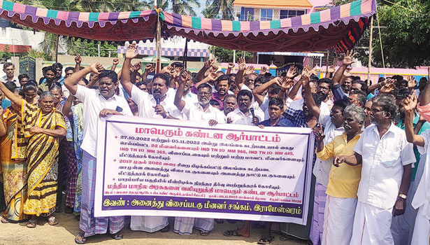 - ஆர்ப்பாட்டத்தில் ராமேசுவரம் அனைத்து மீனவர் சங்கப் பிரதிநிதிகள் கலந்து கொண்டனர்.