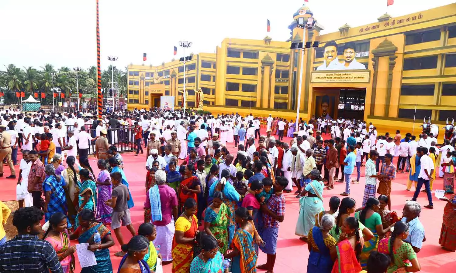 - படியூர் தொட்டியப்பாளையத்தில் 40 ஏக்கர் பரப்பளவில் அண்ணா அறிவாலயம் போன்ற முகப்பு தோற்ற நுழைவு வாயிலுடன் பிரமாண்ட பந்தல், மேடை அமைக்கப்பட்டு இருந்தது.