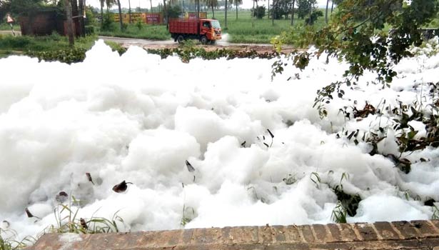 மேலும் இந்த நுரை மலை போல் பெருகி காற்றில் பறந்து அருகில் உள்ள விமான நிலைய சாலையில் பறப்பதால் வாகன ஓட்டிகளுக்கு இடையூறு ஏற்படுத்துகிறது.