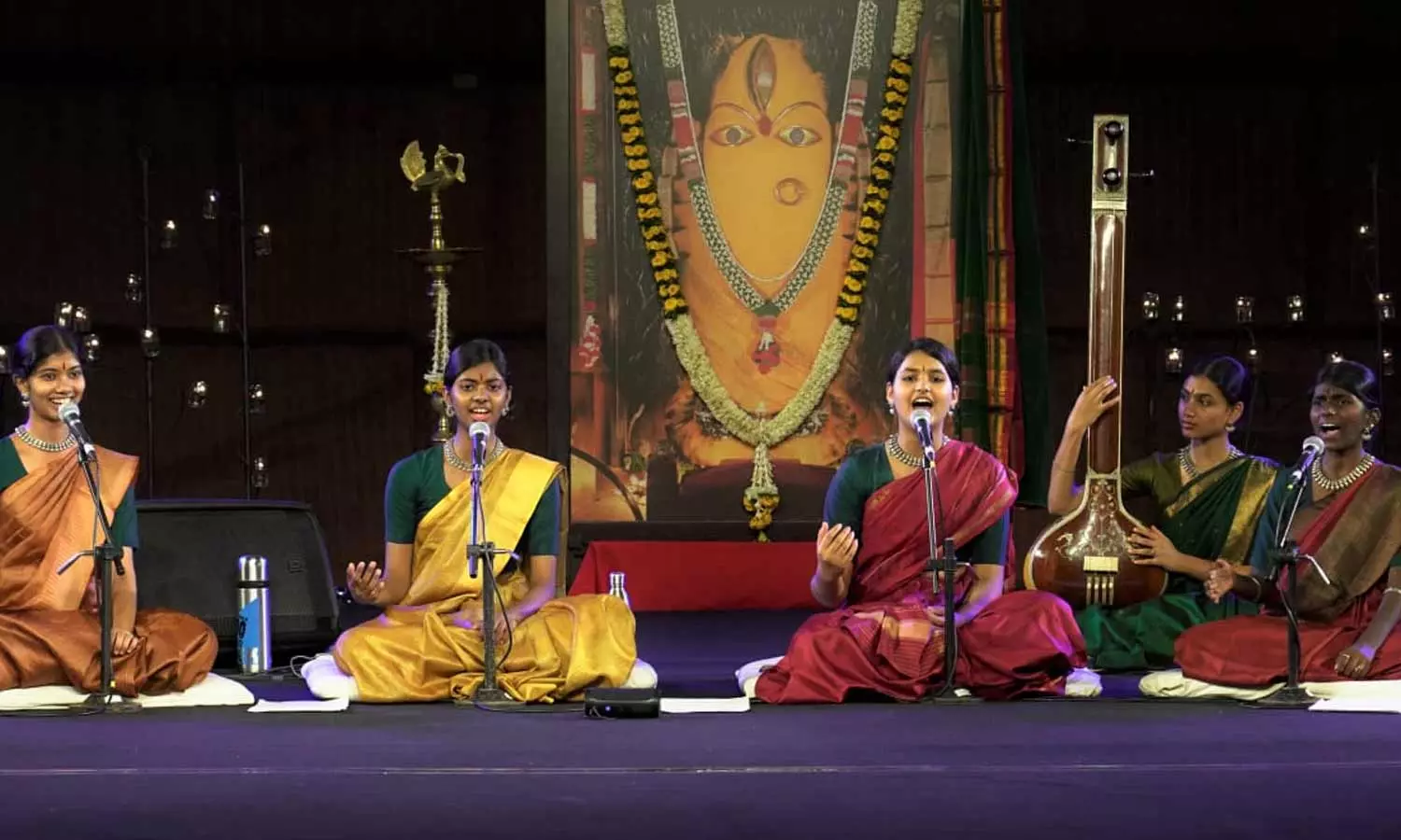 தெய்வீகமான பெண் தன்மையைக் கொண்டாடும் வகையில் புராஜெக்ட் சமஸ்கிருதி மாணவர்கள் "ஜெகதீஸ்வரி பிரம்ம ஹ்ரிதயேஸ்வரி" என்கிற பாடலை முதல் பாடலாகப் பாடி நிகழ்ச்சியைத் தொடங்கினர். தொடர்ந்து இசைக்கப்பட்ட இசையும் பாடல்களும் அரங்கில் இருந்த பக்தர்களைப் பரவசத்தில் ஆழ்த்தியது.