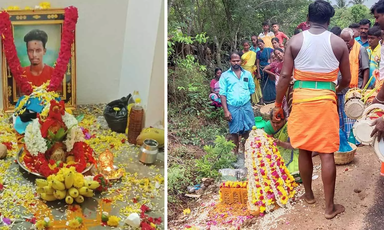 இறந்தவர் ஆவியை வீட்டிற்கு அழைத்து வர சிறப்பு பூஜைகள் செய்த காட்சி