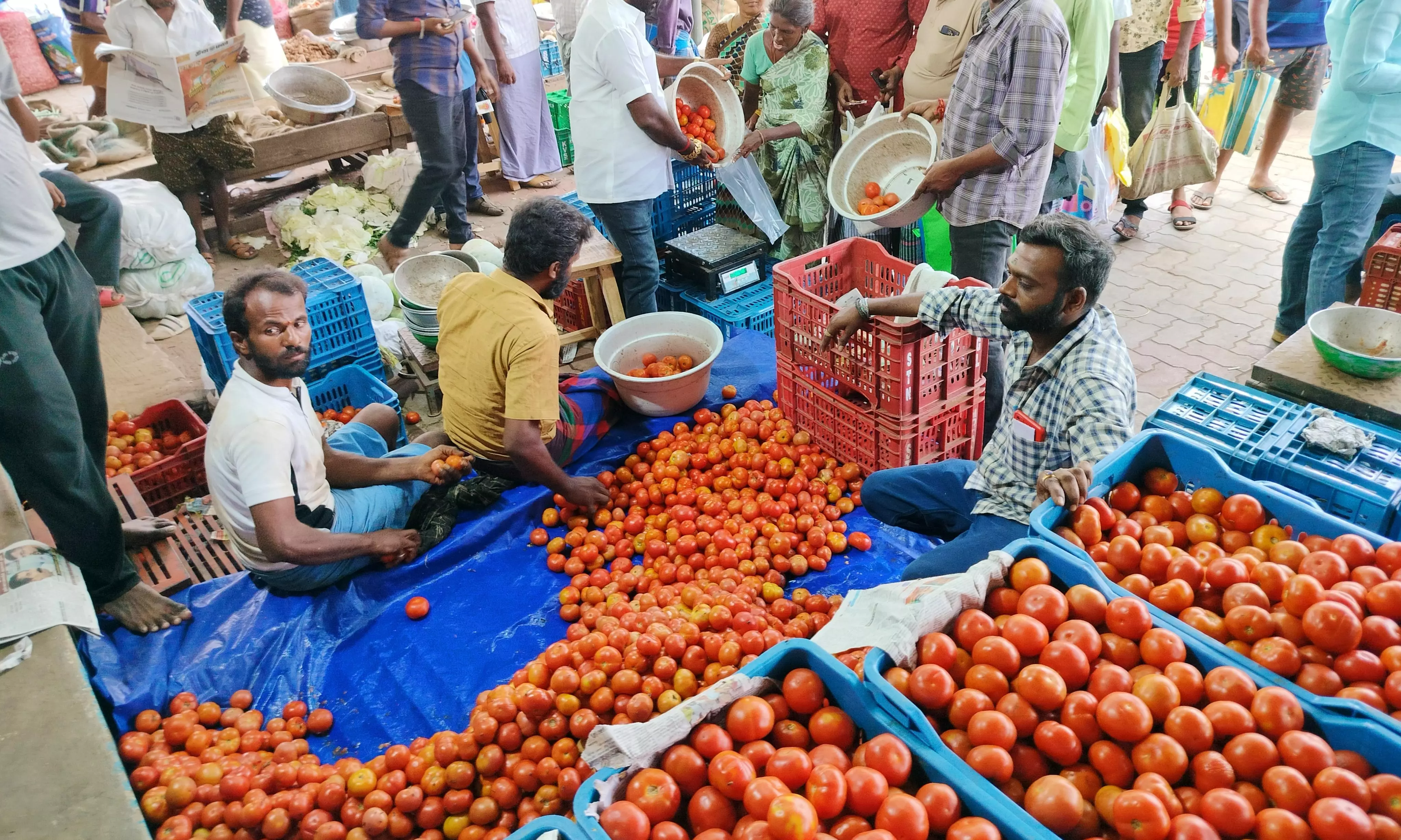 இன்று மலிவு விலை தக்காளி பொதுமக்களுக்கு வழங்க 5 டன் வரவழைக்கப்பட்டுள்ளது. நபர் ஒருவருக்கு 2 கிலோ மட்டுமே வழங்கப்படுகிறது. வியாபாரிகளுக்கு வழங்கவில்லை.