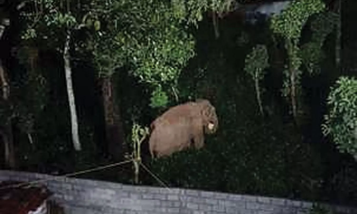 போலீஸ் குடியிருப்பு பகுதிக்குள் புகுந்த காட்டு யானை அங்கு உள்ள பலாமரத்தில் இருந்து பலாப்பழத்தை பறித்து ருசித்து சாப்பிடட காட்சி.