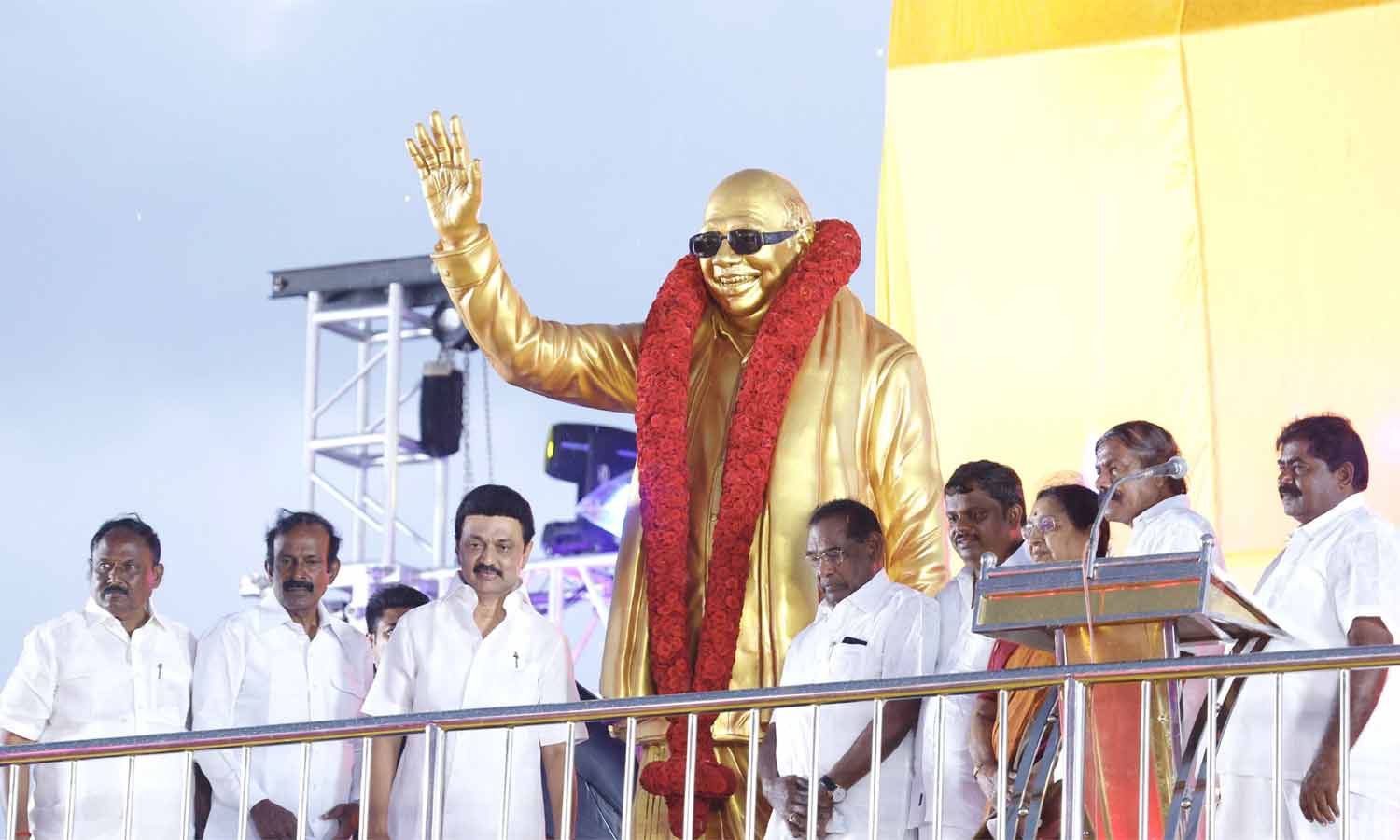 - கருணாநிதி சிலையின் அருகே கட்டப்பட்டுள்ள கலைஞர் நூலகத்தை முதலமைச்சர் திறந்து வைத்தார்.