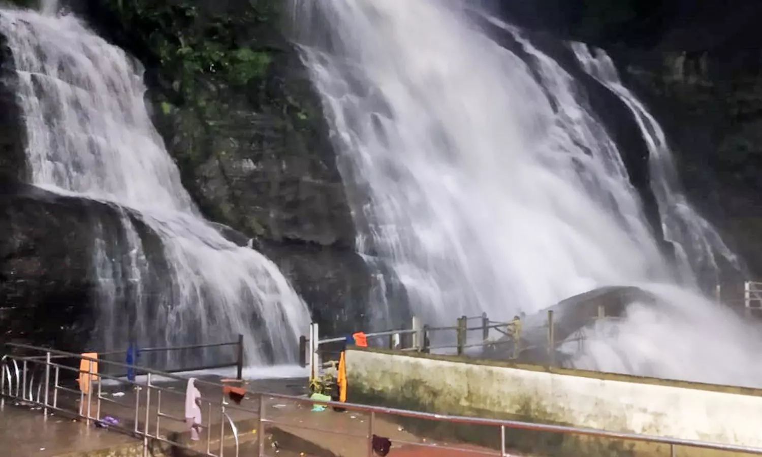 மேற்கு தொடர்ச்சி மலைப் பகுதியில் பெய்த கனமழையின் காரணமாக மெயின் அருவி, பழைய குற்றாலம், ஐந்தருவி, புலியருவி, சிற்றருவி உள்ளிட்ட அனைத்து அருவிகளிலும் தண்ணீர் ஆர்ப்பரித்து கொட்டியது. மெயின் அருவியில் ஆர்ச்சை தாண்டி தண்ணீர் விழுந்தது.