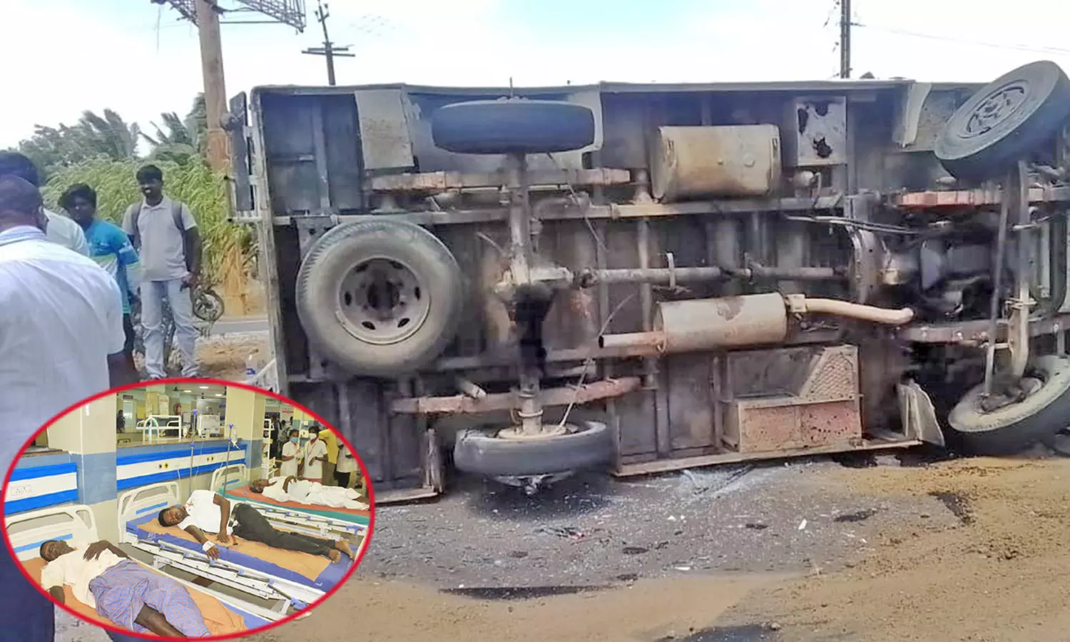 ரெட்டியார்பட்டியில் டயர் வெடித்து நடுரோட்டில் கவிழ்ந்த வேன்- 20 பேர் படுகாயம்
