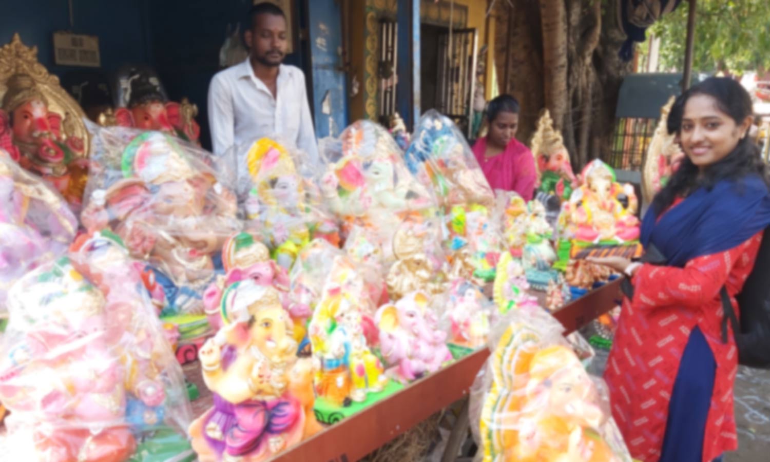 விநாயகர் சதுர்த்தியையொட்டி சென்னையில் கண்களை கவரும் விநாயகர் சிலைகளை ஆர்வமுடன் பொதுமக்கள் வாங்கி செல்கிறார்கள்.