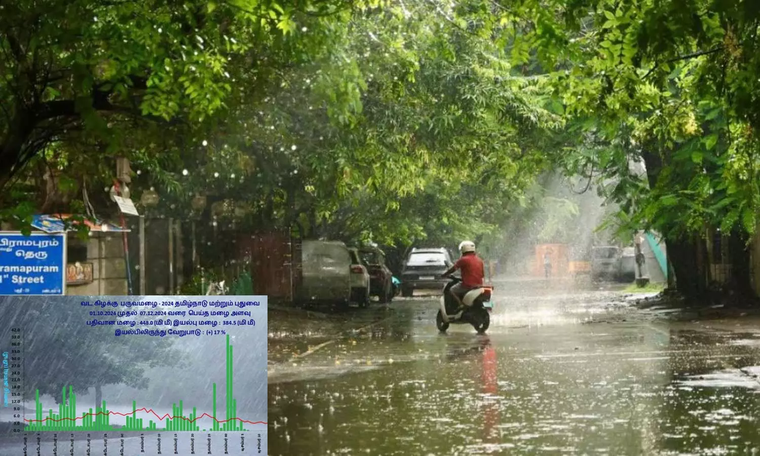 தமிழ்நாடு மற்றும் புதுவையில் 01.10.2024 முதல் 07.12.2024 வரை 448.0 (மி மீ) மழை பதிவாகியுள்ளது. இந்த காலகட்டத்தில் வழக்கமாக 384.5 (மி மீ) தான் பெய்யும்.