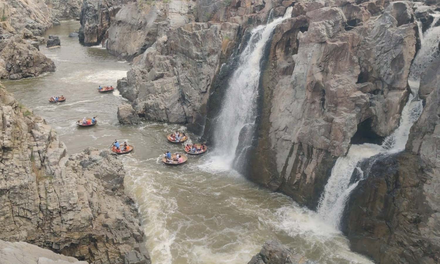 ஒகேனக்கல் மெயின் அருவியில் குறைந்த அளவே தண்ணீர் கொட்டி வருகிறது. ஐவர் பாணி உள்ளிட்ட பகுதிகளில் தண்ணீர் இன்றி வறண்டு காணப்படுகிறது.