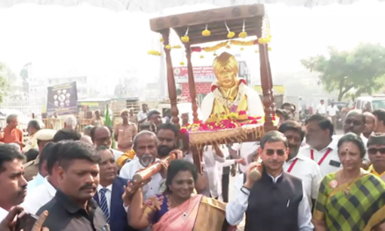 - ஆளுநர் ஆர்.என்.ரவி, பா.ஜ.க. மூத்த தலைவர் தமிழிசை சவுந்தரராஜன் பல்லக்கை சுமந்து சென்று பாரதியாரின் நினைவு இல்லத்தில் வைத்து மரியாதை செலுத்தினர்.