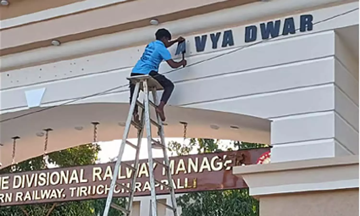 புதிதாகக் கட்டி முடிக்கப்பட்ட திருச்சி மண்டல ரெயில்வே அலுவலகத்தின் நுழைவு வாயிலுக்கு "கர்தவ்ய த்வார்" என தெற்கு ரெயில்வே இந்தியில் பெயர் வைத்தது பரபரப்பை ஏற்படுத்தியது.