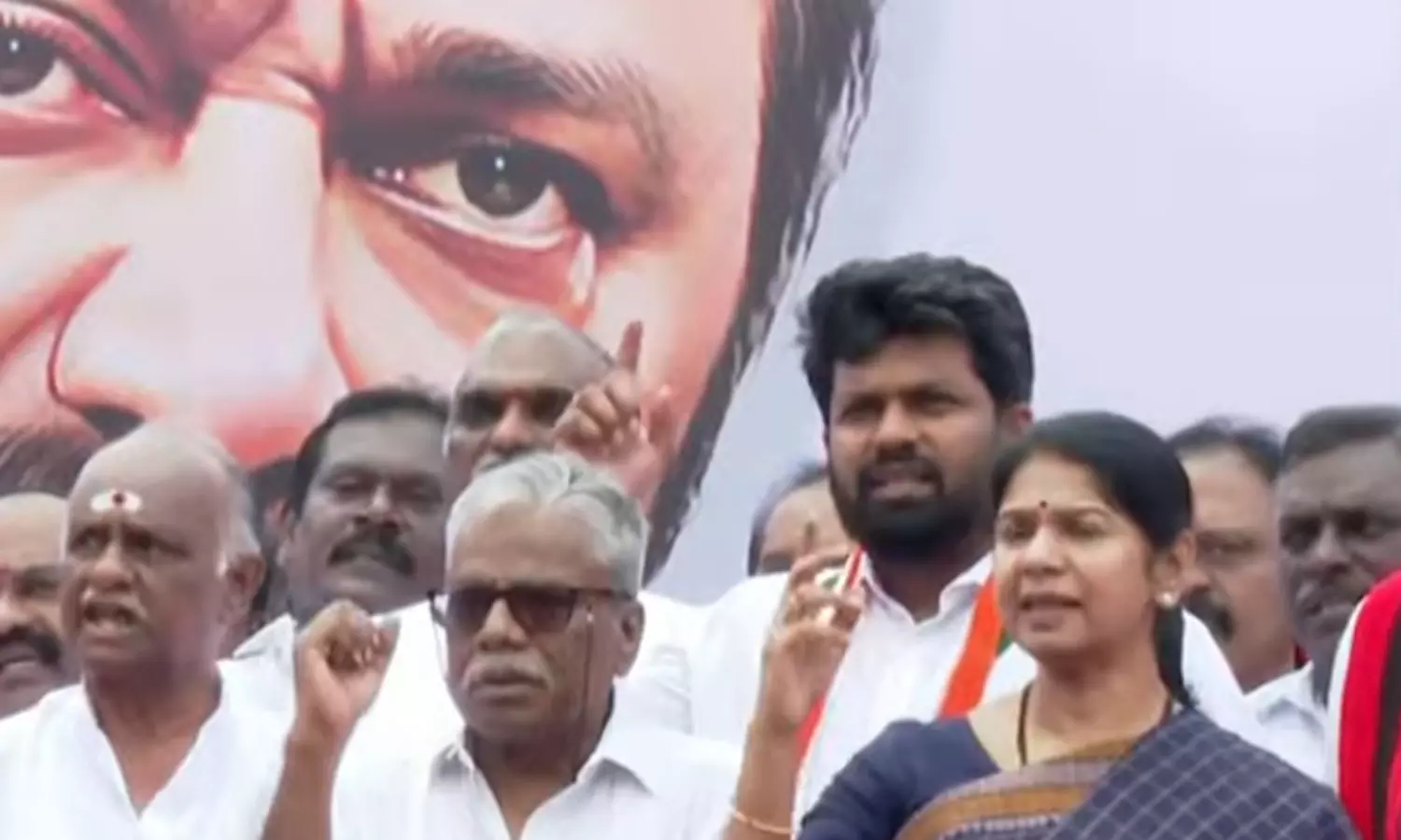 வாக்காளர் சிறப்பு தீவிர திருத்தத்திற்கு எதிராக தூத்துக்குடியில் கனிமொழி தலைமையில் ஆர்ப்பாட்டம் நடைபெற்றது.