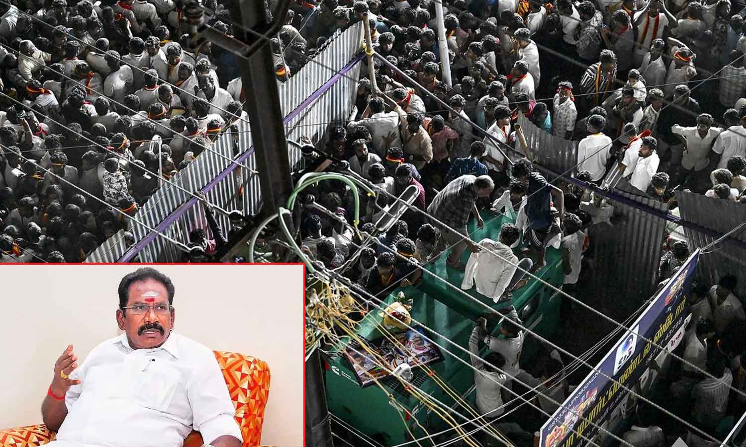 கரூரில் அதே இடத்தில் எடப்பாடி பழனிசாமி பிரசாரம் செய்ய அனுமதி கேட்டபோது, அந்த இடத்தில் நெரிசல் ஏற்படும் என போலீசார் அனுமதி மறுத்தனர். பின்னர் அனுமதி கொடுத்தனர். அது போல த.வெ.க.வினர் கேட்டபோது அந்த இடத்தில் அனுமதியை மறுத்து வேறு அகலமான இடத்தை அவர்களுக்கு கொடுத்திருக்க வேண்டும். ஆனால் போலீசார் அப்படி செய்யவில்லை. மேலும் விஜய் காலதாமதமாக அந்த பகுதிக்கு வந்துள்ளார். அவரால் கூட்டத்தை கட்டுப்படுத்த முடியவில்லை. சம்பவம் நடந்தவுடன் உடனடியாக விசாரணை ஆணையத்தை தி.மு.க. அரசு நியமித்தது எப்படி?