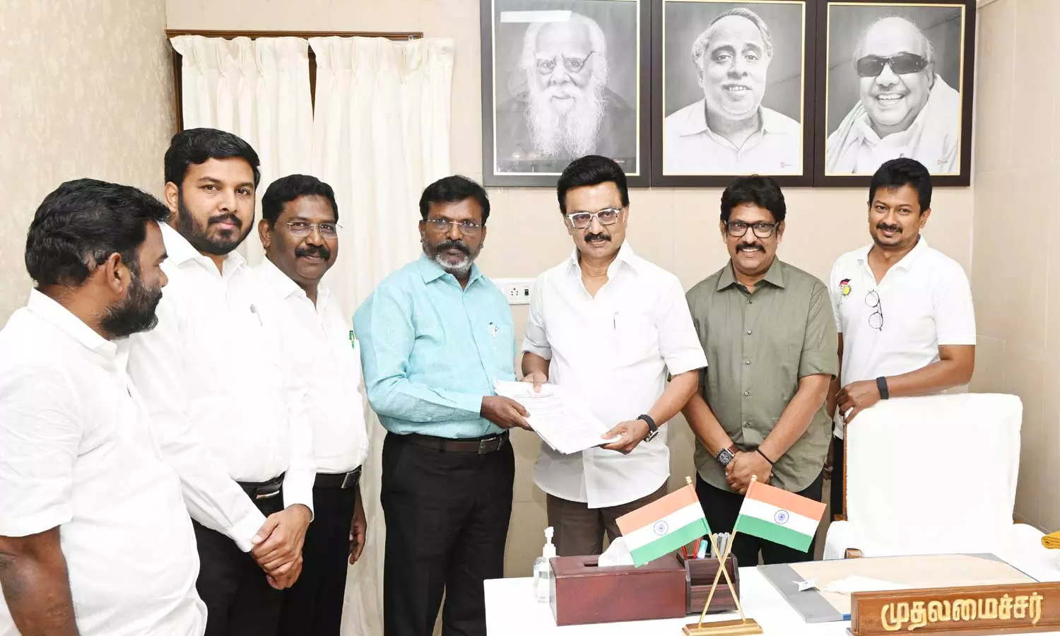 இந்த சந்திப்பின்போது சாதி பெயர்களில் உள்ள 'ன்' எழுத்தை நீக்கி 'ர்' சேர்க்க வேண்டும் என முதலமைச்சரிடம் வி.சி.க. தலைவர் திருமாவளவன் கோரிக்கை வைத்துள்ளார்.
