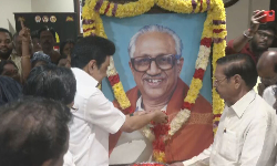பேராசிரியர் அன்பழகனின் 102வது பிறந்தநாள் விழா - சென்னை அண்ணா அறிவாலயத்தில் உள்ள அவரது உருவப் படத்திற்கு முதலமைச்சர் மு.க.ஸ்டாலின் மற்றும் அமைச்சர்கள் மலர் தூவி மரியாதை செய்தனர்.